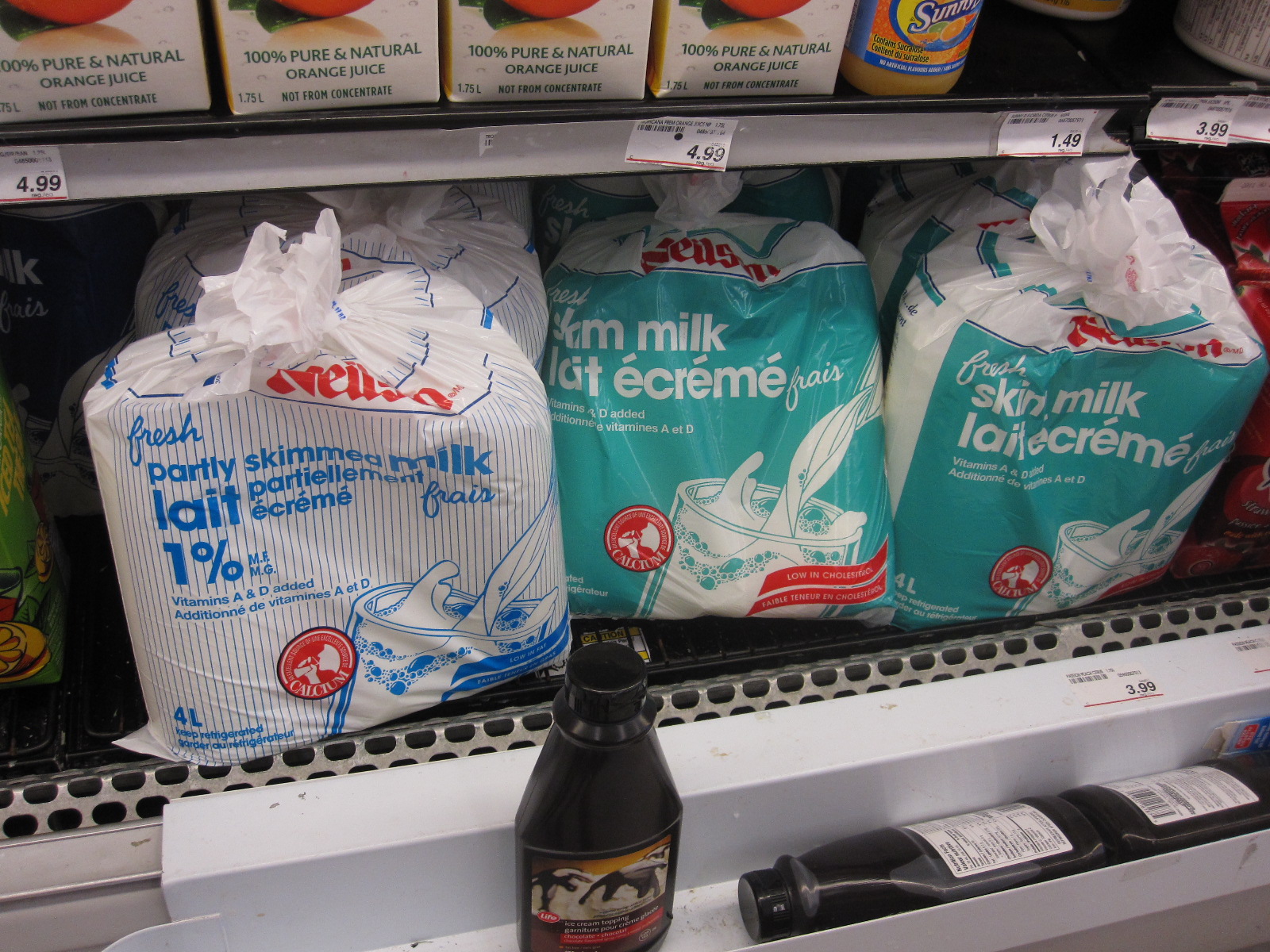 they sell milk in plastic bags!