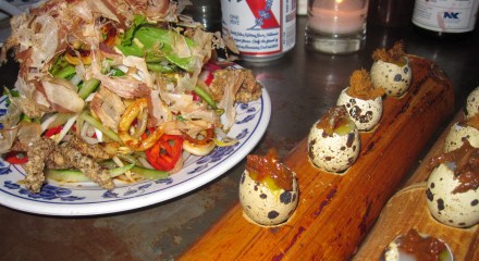 whiskey chased by egg; squid, short-rib, oh the comfort duck fat in my pores